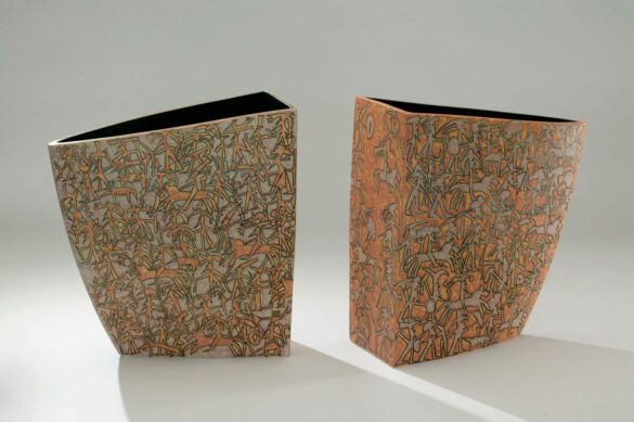 La obra de Jordi i Rosa, forma y dibujo siempre a cuatro manos, enfocando el objeto cerámico desde un ámbito narrativo, es decir, la obra recrea con ironía o sentido crítico nuestro mundo, con un lenguaje formal cercano al comic, y que se despliega alrededor del objeto, de su superficie, en su piel.