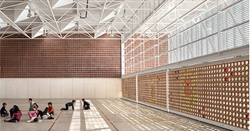 Primer premio Arquitectura: “Pabellón Docente Polivalente Escola Gavina” (Picanya, Valencia) de Carmen Martínez Gregori, Carmel Gradolí Martínez y Arturo Sanz Martínez. El jurado destaca que formando parte de una arquitectura sencilla y eficaz, se valora la integración del material cerámico para resolver los problemas de acondicionamiento acústico y control lumínico. La manera de emplear el material resuelve la relación del espacio interior con el entorno (Acceso a toda la información del proyecto)