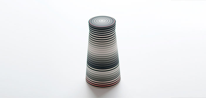 Jin Eui Kim (Corea del Sur) manipula con perfección la percepción de las estructuras 3-D con la incorporación de bandas sobre la superficie de sus esculturas, caracterizadas por la perfección en el acabado. Utiliza al menos 18 diferentes tonos que aplica con gran precisión.