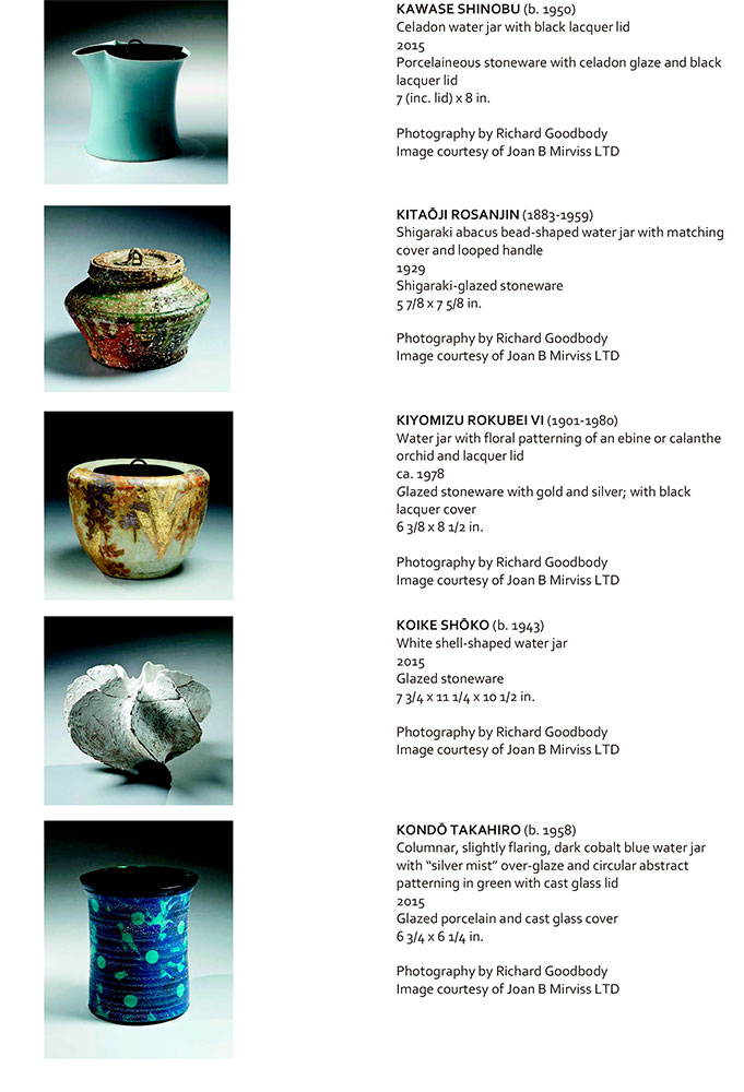 La galería Joan B. Mirviss Ltd. participará el próximo mes de marzo en la feria Asia Week New York, de Nueva York, donde ha mostrado una selección de piezas muy concretas, las utilizadas para contener agua en la japonesa ceremonia del té.