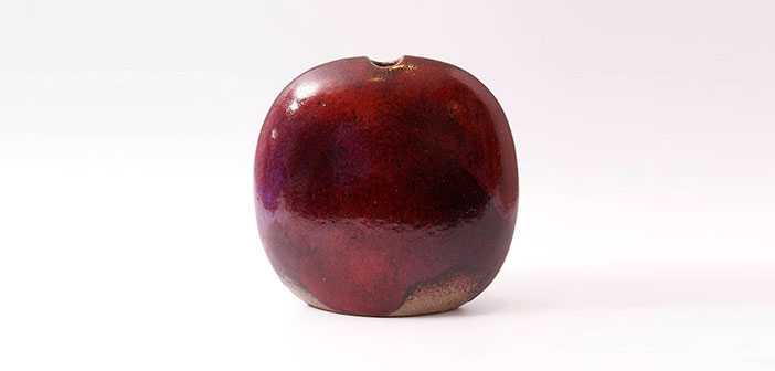 Edouard Chapallaz (1921-2016) Jarrón plano en gres esmaltado en rojo. Alto, 24,5 cm. (Pieza de la Galerie Latham, Ginebra)