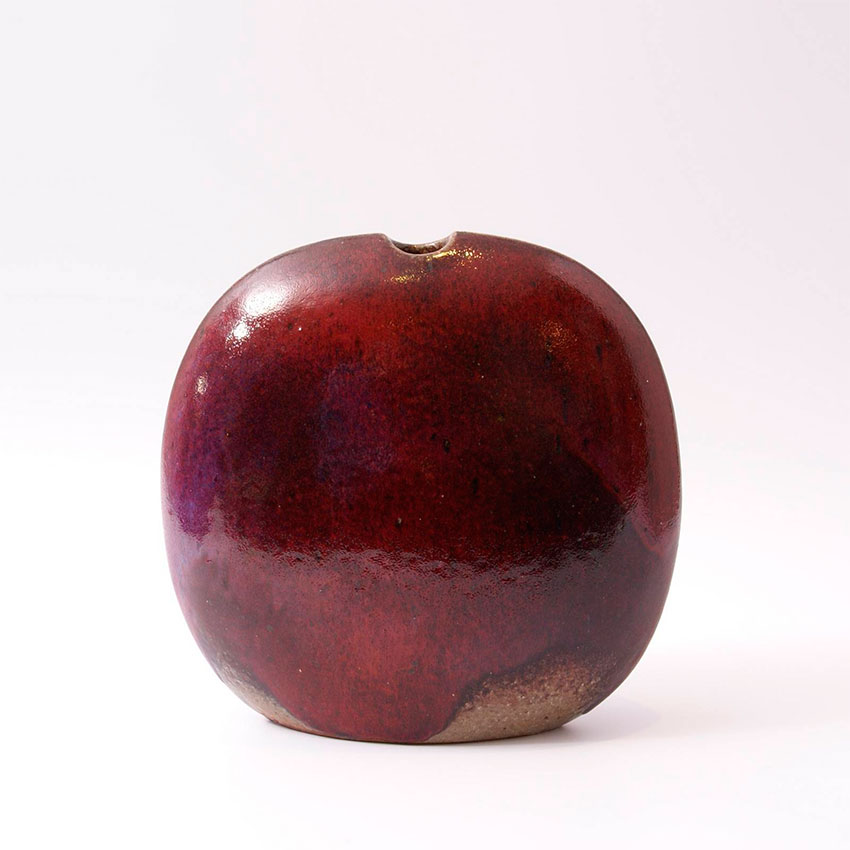 Edouard Chapallaz (1921-2016) Jarrón plano en gres esmaltado en rojo. Alto, 24,5 cm. (Pieza de la Galerie Latham, Ginebra)