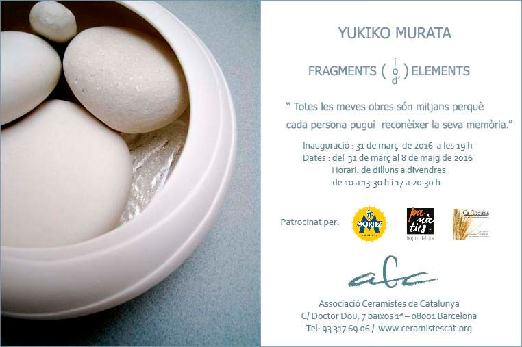 El 31 de Marzo, a las 19 horas tendrá lugar la inauguración en la sala de exposiciones de la Associació Ceramistes de Catalunya, en Barcelona, de la muestra de la ceramista japonesa Yukiko Murata.