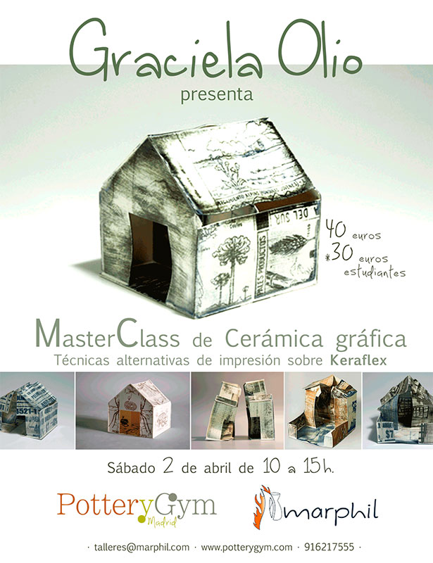 Pottery Gym (Madrid) propone para el sábado 2 de abril una jornada con la ceramista argentina Graciela Olio dedicada a las técnicas alternativas de impresión sobre Keraflex.