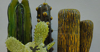 Por otro lado, los alumnos de primero del Ciclo de Cerámica Artística muestran ‘Cactus’, una instalación de 14 piezas, construidos en terracota y acabados con esmaltes de baja temperatura preparados en el módulo de Materiales y tecnología.
