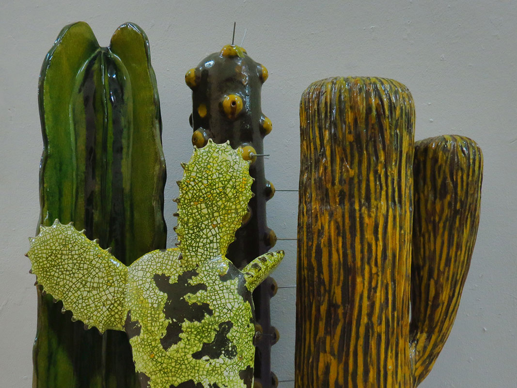 Por otro lado, los alumnos de primero del Ciclo de Cerámica Artística muestran ‘Cactus’, una instalación de 14 piezas, construidos en terracota y acabados con esmaltes de baja temperatura preparados en el módulo de Materiales y tecnología.