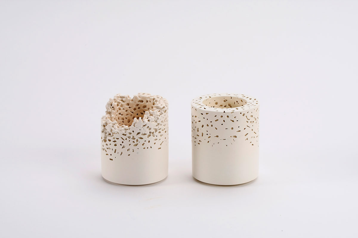 Esta instalación consta de 3 piezas realizadas en espacios más o menos vacíos que ilustran la porosidad a escala humana. La técnica consiste en mezclar arcilla con bolas de arroz inflado (뻥튀기) para crear cavidades a través de la combustión durante el proceso de la cocción. Cuando la forma de las bolas de arroz aparece en negativo dentro de la arcilla, su estructura externa se convierte en la estructura interna de la arcilla. En combinación con la luz, las sombras aparecen en las cavidades y revelan su forma. Cuantos más espacios vacíos aparecen, más formas se hacen visibles. La capacidad de los materiales orgánicos (como el arroz inflado) para crear cavidades en la arcilla conduce a una apreciación estética de la porosidad. La porosidad encierra conceptos opuestos como luz y sombra, lleno y vacío, visibles e invisibles mundos opuestos. En ese sentido, el vacío es la forma.