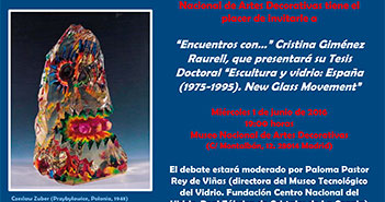 La Asociación de Amigos del Museo Nacional de Artes Decorativas organiza en el Museo de Artes Decorativas de Madrid, el miércoles 1 de junio, a las 19 horas la actividad titulada “Encuentros con…”, en la que Cristina Giménez Raurell presentará su Tesis Doctoral “Escultura y vidrio: España (1975-1995). New Glass Movement”
