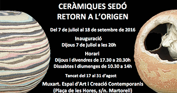 El 7 de julio, a las ocho de la tarde tendrá lugar en el Espai Muxart, de Martorell (Barcelona), la inauguración de la exposición “Ceràmiques Sedó retorn a l’origen”