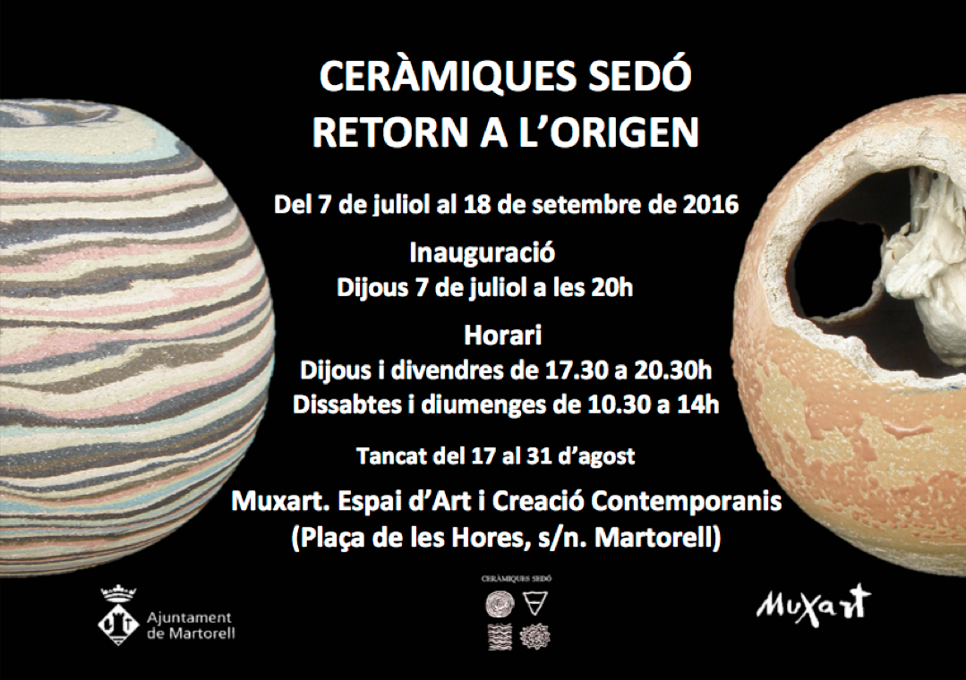 El 7 de julio, a las ocho de la tarde tendrá lugar en el Espai Muxart, de Martorell (Barcelona), la inauguración de la exposición “Ceràmiques Sedó retorn a l’origen”