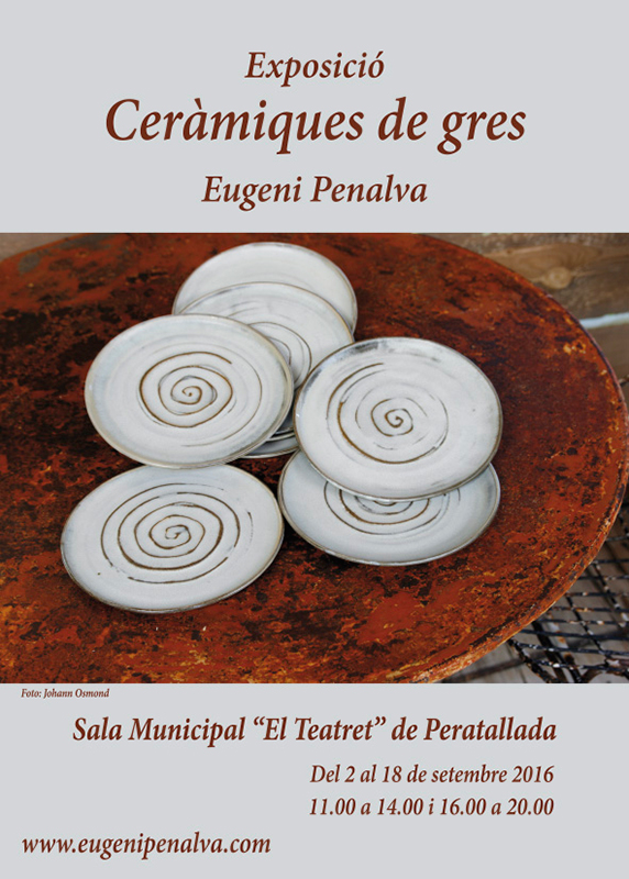 Del a al 18 de septiembre se puede visitar la exposición de Eugeni Penalva, titulada “Ceràmiques de gres”, en la Sala Municipal “El Teatret”, de Peratallada (Girona).