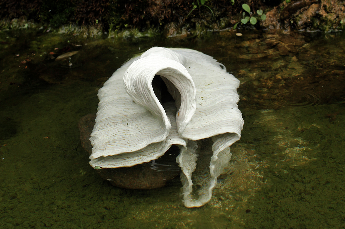 El viento, el agua, la tierra, se expresa con formas acuosas, obsesivamente ondulantes, en búsqueda del origen del mundo, no existiría vida sin este elemento transformador y modificador de nuestro entorno, su fuerza, su energía me provoca y me emociona trasladándola de esta manera en mis obras.”