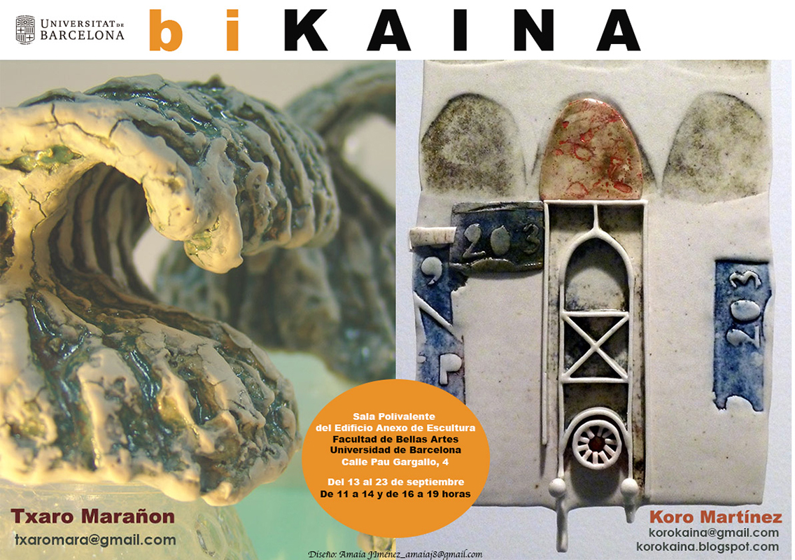 El 14 de septiembre, a las 12 horas, se inaugura la exposición titulada “biKAINA” que muestra la obra en cerámica de Koro Martínez y Txaro Marañón la Facultad de Bellas Artes de Barcelona.