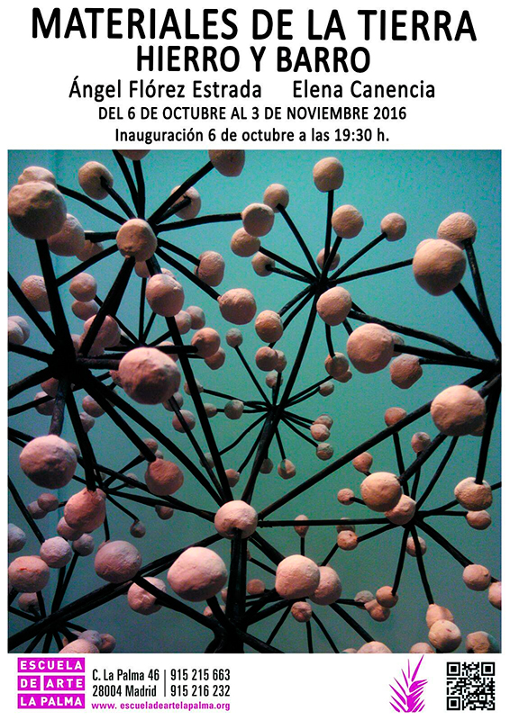 El 6 de octubre se inaugura en la Escuela de Arte de la Palma, de Madrid, la exposición de esculturas realizadas en hierro y barro por Ángel Flórez Estrada y Elena Canencia.