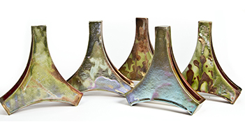 En este curso se trabajarán las composiciones, formas de esmaltar y distintas cocciones de los esmaltes de reflejo cerámico. El resultado espectacular de estos esmaltes nos dan la posibilidad de aprovechar este recurso en zonas o superficies de nuestras piezas en una cocción especial, utilizando formulaciones propias. El reflejo metálico tradicional utiliza la decoración pintada sobre superficies esmaltadas. Con los esmaltes de reflejo la decoración es diferente, siendo ellos mismos los que proporcionarán el efecto.