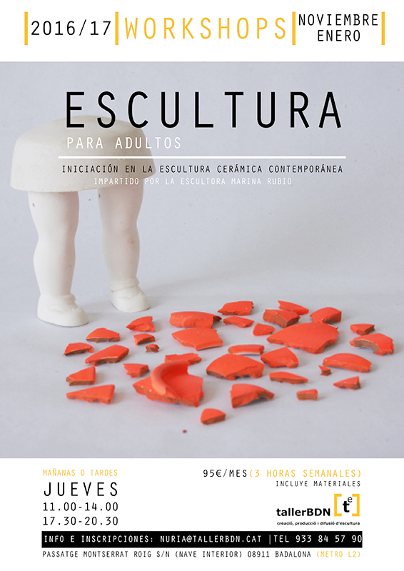 Marina Rubio presenta sus cursos de iniciación a la escultura cerámica que se impartirán en el Taller BDN, de Badalona (Barcelona), durante los meses de noviembre de 2016 a enero de 2017.