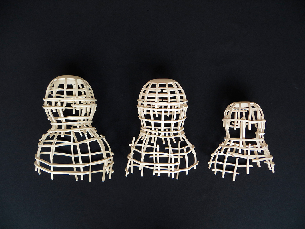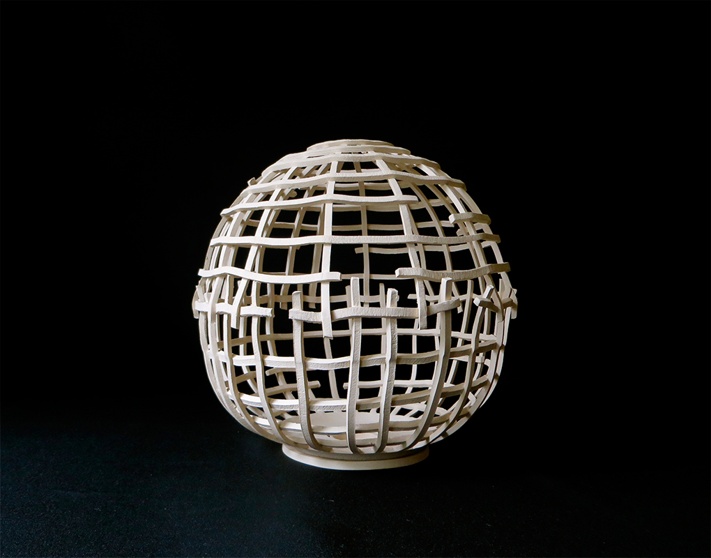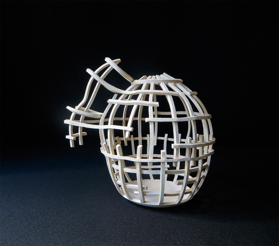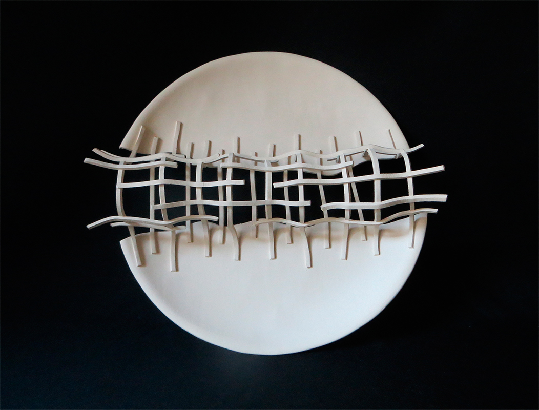 “Atrapar el espacio con mallas de hilos de cerámica. Toda una revelación comprobar como mis juegos de niñez entre retales, alfileres y tijeras han marcado mi expresión artística. Aquellas tardes cosiendo ropa para la Nancy y recortando mariquitas de papel con el ta-ca-tá de la máquina de coser de fondo. Sigo jugando a los mismos juegos, cosiendo con barro esqueletos de objetos y cuerpos. Piezas que bien podrían ser ¿wireframes?, patrones 3D sacados de la realidad virtual, aunque sorprendentemente sólidas y ligeras. No en vano han sobrevivido al fuego.