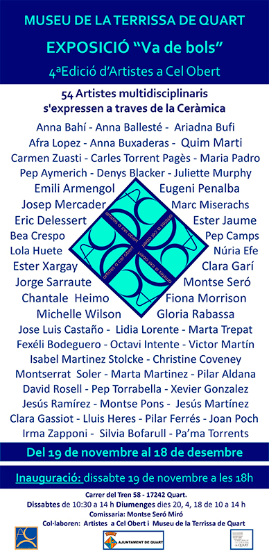 Hasta el 18 de diciembre se puede visitar en el “Museu de la Terrissa de Quart” (Girona), esta exposición organizada por la “Associació Artistes a Cel Obert”, que cuenta con la obra en cerámica de 54 artistas.