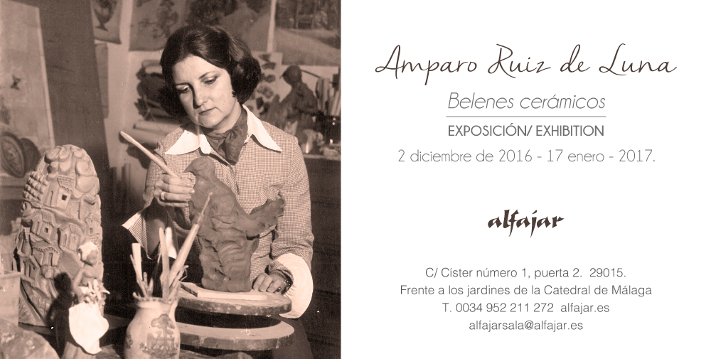 “Hablar de cerámica en Málaga es hablar de los Ruiz de Luna. Y traer a la memoria el nombre de Amparo supone constatar el fin de una saga y de una manera de tratar el barro. Llegada a nuestra ciudad después de impulsar el resurgimiento de la alfarería talaverana, la familia coronó con su obra buena parte del mobiliario urbano malagueño. Para el recuerdo y la ternura, quedan ya los belenes de esta mujer fallecida en el verano de 2015 y cuya inocencia para con la tierra pueden disfrutar con nosotros desde hoy”. Ignacio Artacho.