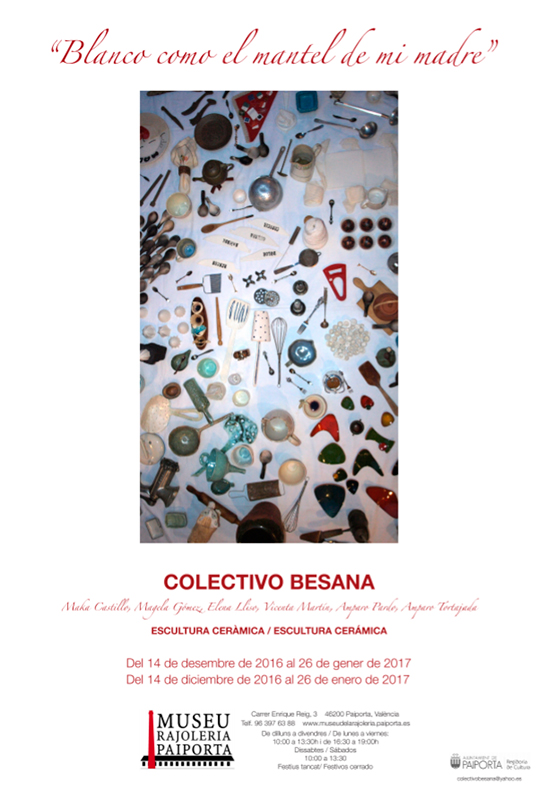 El Colectivo Besana presenta la exposición titulada “Blanco como el mantel de mi madre”, que se inaugurará el próximo miércoles 14 de Diciembre de 2016 a las 19:30 horas en el Museu Rajoleria de Paiporta (Valencia).