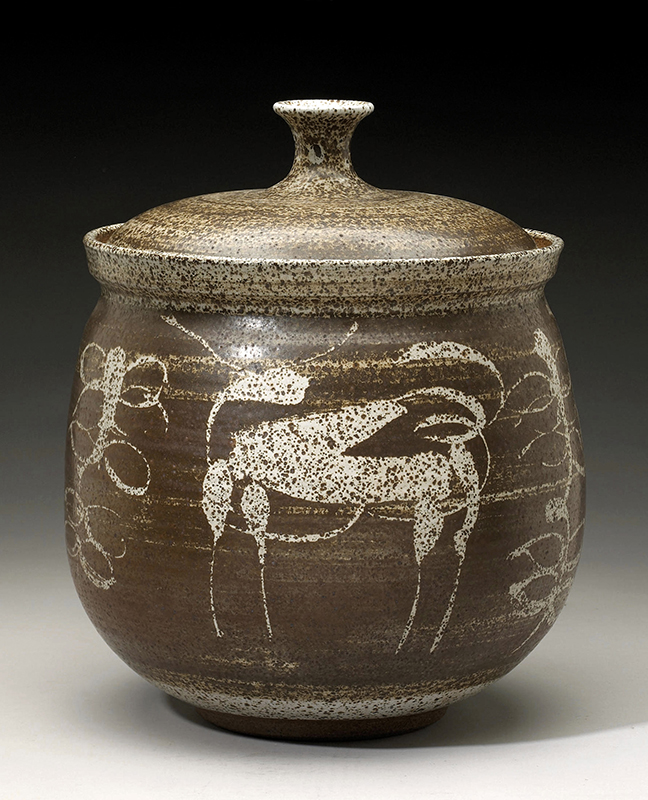 vasija con tapa, 1953. Gres y engobes, 41,9 x 21,6 x 21,6 cm) Museum of Arts and Design, regalo de Aileen Osborn Webb, a través del American Craft Council, 1967.