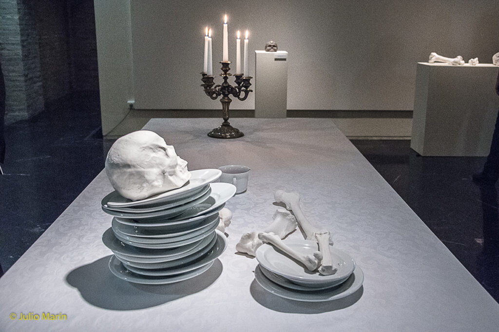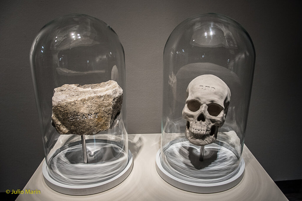 “Death is the mother of beauty” dice el personaje de Sunday Morning de Wallace Stevens. La metáfora es poderosa, identifica la muerte a la madre, pero una madre en la que se invierte la función que le es propia y en lugar de deshacer pasa a ser muerte-madre que concibe, engendra y da a luz y es su descendencia la belleza. Cediendo a la potencia de esas palabras, digamos, pues, que es así, que de la muerte, de sus signos, nace la belleza y no parece que sea inapropiado ese punto de partida, sino todo lo contrario, cuando recorremos las piezas de Fin que nos regalan el ingenio y las manos de Miguel Ángel Gil que ponen ante la vista la belleza de los despojos; piezas de impecable factura, de riqueza de significado: arte, belleza.