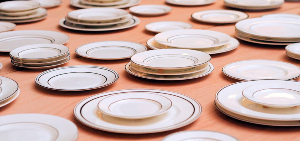 Clare Twomey, Intervención con platos de porcelana de huesos de Wedgwood en el V&A, 2011(Foto: Clare Twomey Studio)