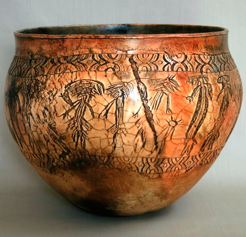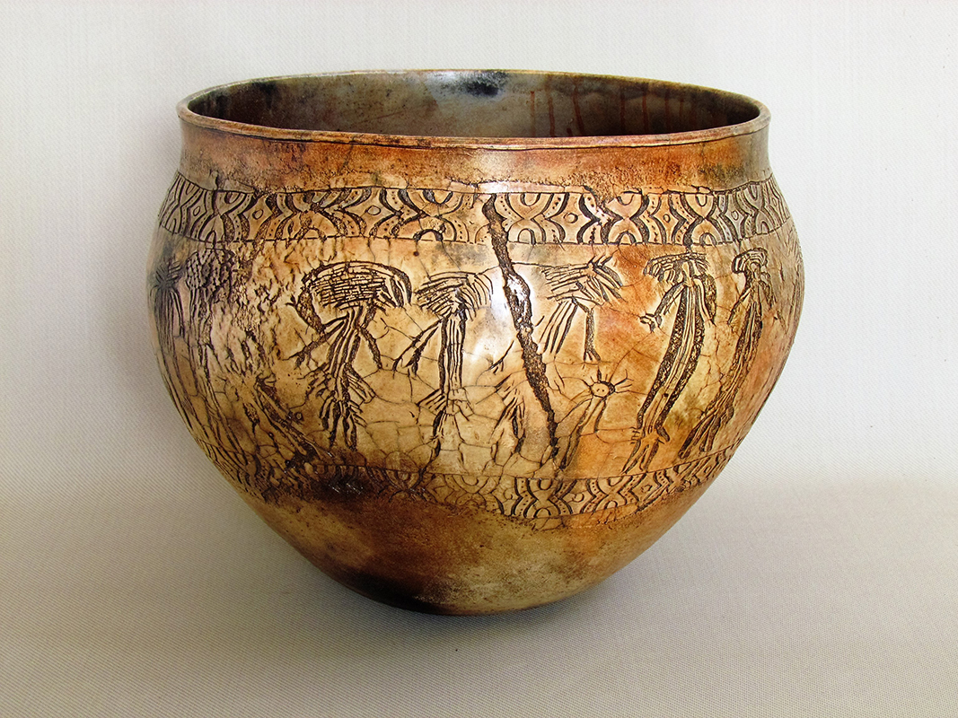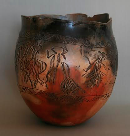 “La artista nos presenta una colección de obras trabajadas con la técnica de cocción con ahumados, inspirades en el neolítico y la obra de sus pobladores.”
