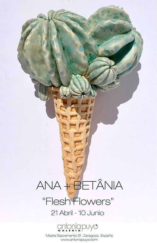 Hasta el 30 de junio se puede visitar en la galería Antonia Puyó, de Zaragoza, la exposición de cerámica del colectivo artístico portugués “Ana+Betânia”, titulada “Flesh Flowers”