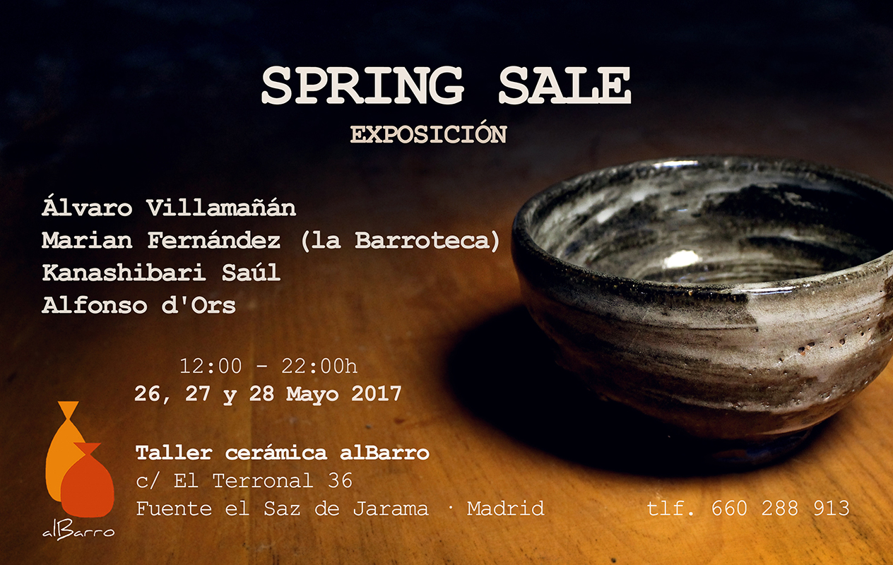 Los días 26, 27 y 28 de mayo se celebrará en el Taller de Cerámica Albarro, en Fuente el Saz, Madrid, la exposición “Spring Sale”, que contará con las cerámicas de Álvaro Villamañán, Marian Fernández, Kanashibari Saúl y Alfonso d’Ors