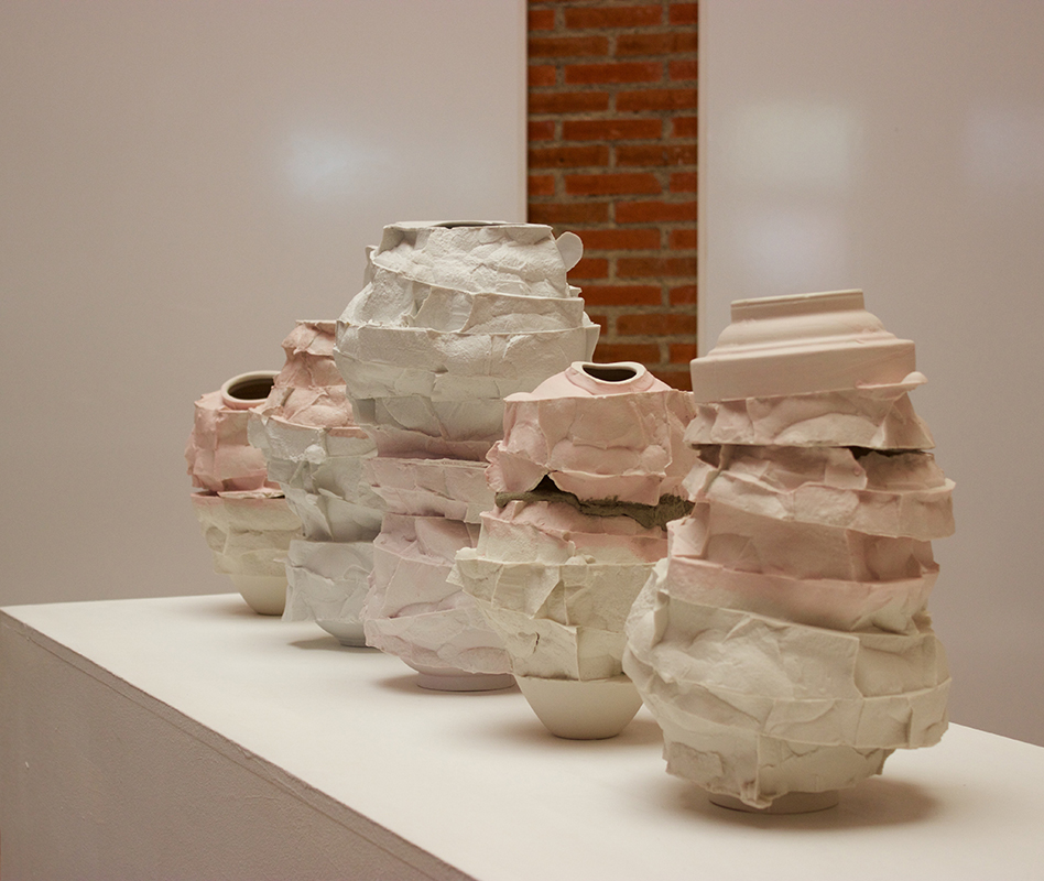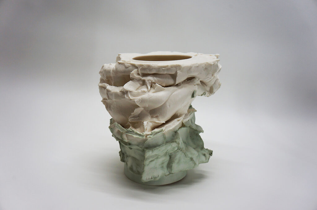 Bueno, yo no creo objetos para ser usados…, una vez hice piezas sin aperturas, sin agujeros, y no me hicieron sentir bien. De alguna manera siento que la cerámica necesita esas aperturas, es el interior y el exterior de las piezas y cómo se diferencian; realmente quiero mostrar el interior de mis piezas y la vasija es la forma perfecta para enseñar tanto el interior como el exterior.
