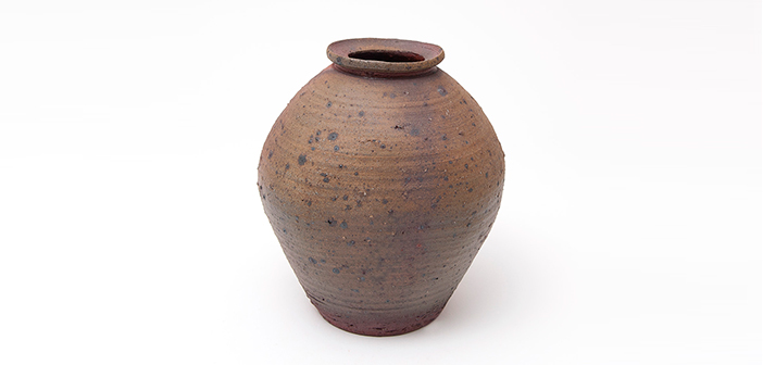 Foto: Shikamaru Takeshita, “Vase”, Cerámica “Nanban”, estilo “Tanegashima”, 2017, 21,6 × 17,8 cm. Gres, cocción de leña.