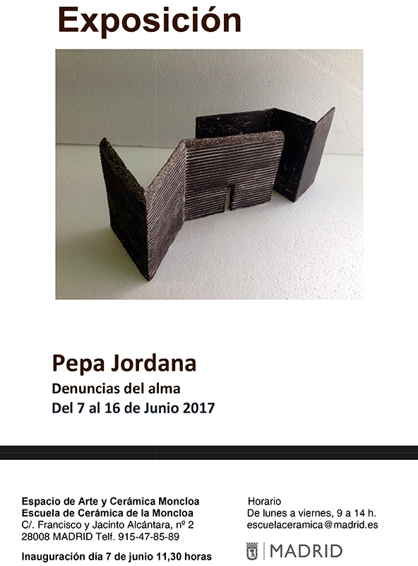 Del 7 al 16 de junio se puede visitar la exposición de cerámica de Pepa Jordana titulada “Denuncias del alma”, en la sala de exposiciones de la Escuela Municipal de Cerámica de La Moncloa, en Madrid