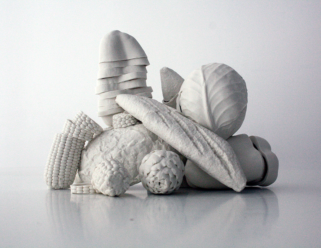 Carlos Martínez es un virtuoso de los moldes, con los que capta de forma hiperrealista la textura de los productos alimentarios que componen esta escultura, que retoma de forma contemporánea el bodegón, un motivo tradicional en el arte y una forma de reflexión sobre la materialidad de la existencia humana.