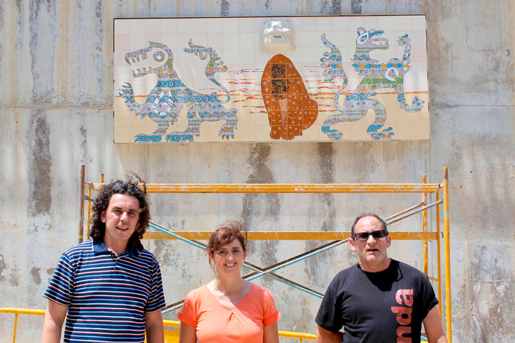 “Las I Convivencias Cerámicas de Onda organizadas con el impulso del Ayuntamiento de Onda y el Museu del Taulell Manolo Safont concluyen definitivamente estos días con la colocación del mural colectivo. La pieza mural elaborada durante las primeras convivencias cerámicas pasará a formar parte del Museu del Taulell Manolo Safont de Onda. Hay que recordar que la obra se realizó con la participación de diferentes ceramistas venidos de distintos lugares de España. La obra estuvo dirigida y creada por la ceramista argentina Rosa Latorre y el ceramista castellonense Ángel Igual, así que es fruto de la unión entre conocimientos artísticos y culturales de Valencia y de Argentina. De nombre “Los guardianes de la cerámica” la obra representa la unión entre diferentes animales mitológicos, valencianos y argentinos, y está decorada con motivos tradicionales de ambas zonas. La figura central aparece con una decoración que homenajea al ceramista ondense -y que da nombre al Museo- Manolo Safont.”