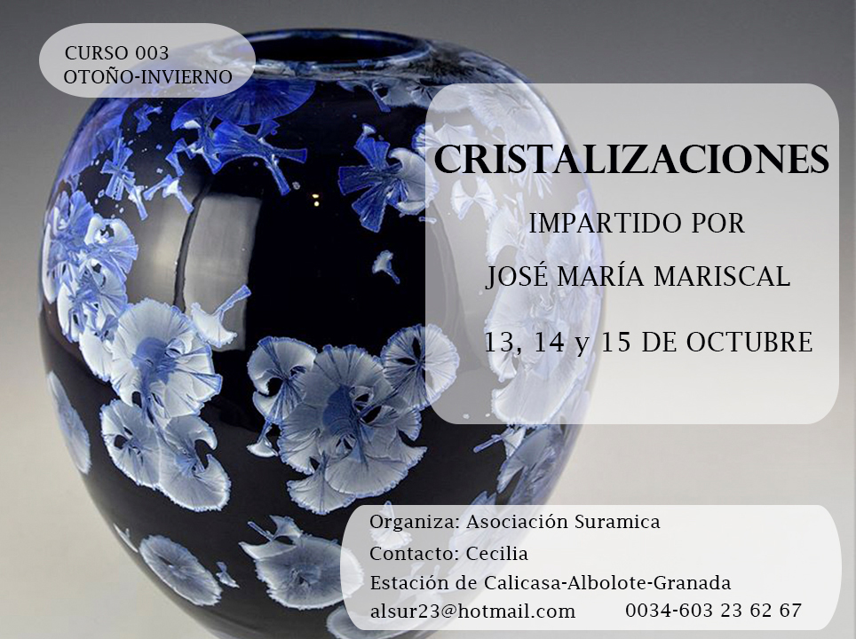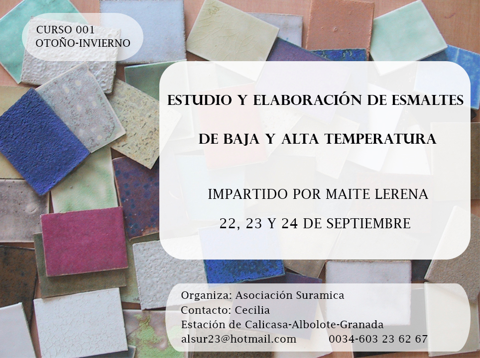 La Asociación Surámica envía el anuncio de los próximos cursos impartidos por Maite Larena, José María Mariscal y Cecilia Punzo, que tendrán lugar durante los meses de septiembre y octubre en la Estacion de Calicasas, Albolote (Granada)