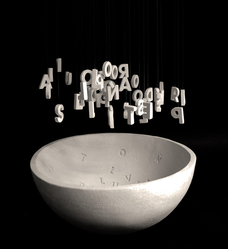 La pieza de esta semana, titulada “Haiku, lluvia de letras”, del artista madrileño José Luis Kuevas, ha sido la ganadora del primer premio en el certamen de cerámica MAPAMA 2017