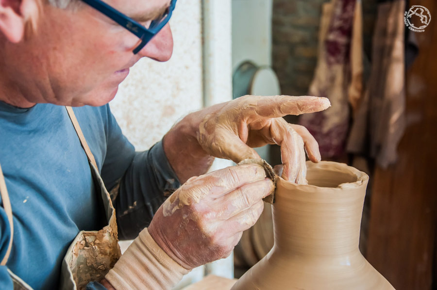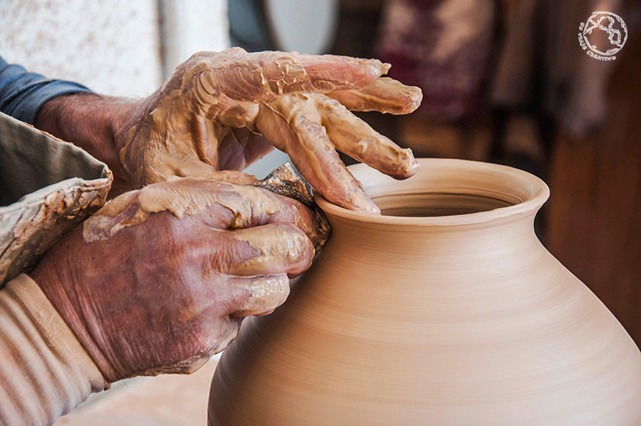 Para un madrileño como yo, acostumbrado al ritmo eléctrico de la gran ciudad, contactar con estas personas fue un gran impacto. Entrar en sus talleres, donde el rojo de la tierra y el frescor y el olor a barro húmedo lo invaden todo, fue como una vuelta al útero, como entrar en una cápsula del tiempo, un lugar donde el ritmo lo marca la rueda con su giro mientras las manos del dios-alfarero hacen surgir una nueva obra de arte(sanía). Entre aquellas cuatro paredes deseé ser barro para volver a nacer entre sus entrañas.