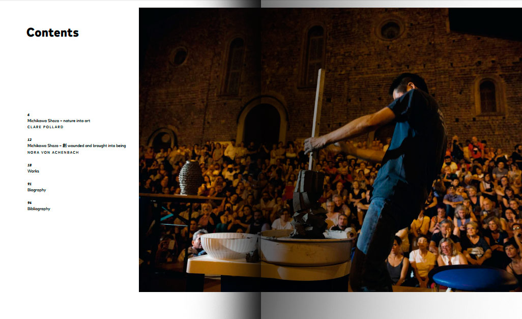 Como comenta Clare Pollard en el primero de los textos, la obra de Michikawa está profundamente influida por la gran sensación de poder que se percibe en la naturaleza de Japón, “la tremenda energía de los volcanes, tifones, terremotos y tsunamis”. Esta sensación proviene probablemente de su infancia en la ladera del volcan Usu, en Hokkaido. Michikawa trata de colaborar con la naturaleza, considera que su trabajo es “simplemente facilitar la transformación del barro”.