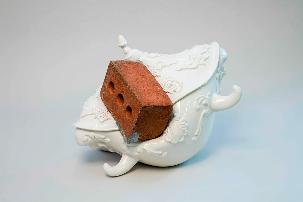Foto: “Adolf Loos Wet Dream V”, 2016. Porcelana, esmalte y ladrillo de barro rojo. 35,7 × 50 × 36,9 cm.