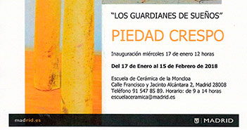 La Escuela Municipal de Cerámica de la Moncloa presenta la exposición titulada “Los guardianes del sueño”, de Piedad Crespo, que se podrá visitar del 17 de enero al 15 de febrero
