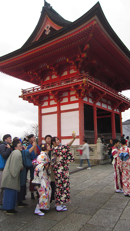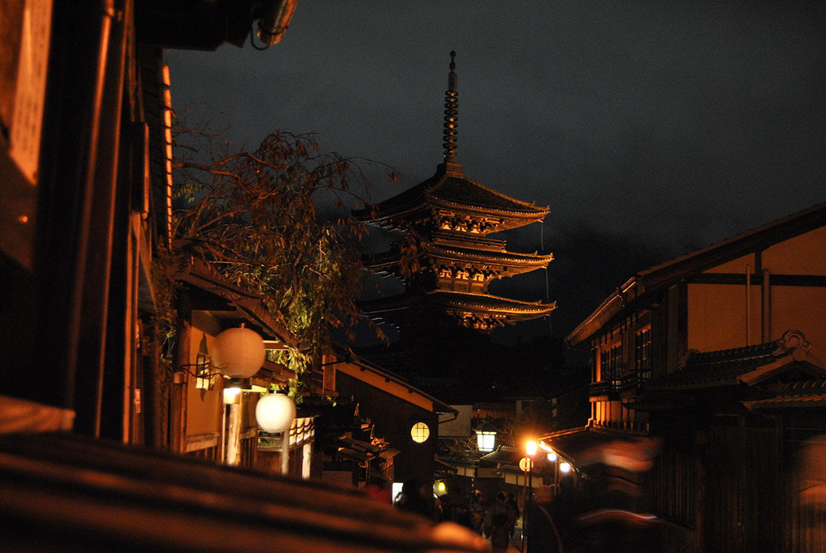 Pero no te dejes llevar por esa melancolía, vuelve a la calle, que se habrá llenado de gente ajetreada: es viernes y habrá cientos de farolillos luciendo en el barrio, las parejas jóvenes se pasearán orgullosas con sus trajes tradicionales, las turistas chinas y coreanas se harán miles de fotos vestidas con sus kimonos de alquiler, y la multitud ascenderá por la empinada calle Matsubara hasta el templo Kiyomizu-dera, desde el que podrás contemplar la antigua capital de Japón con los colores del otoño y la puesta de sol.