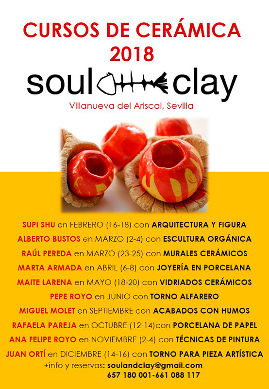 El taller “Soul & Clay”, de Villanueva del Ariscal, Sevilla, presenta los próximos cursos de cerámica que se impartirán en 2018