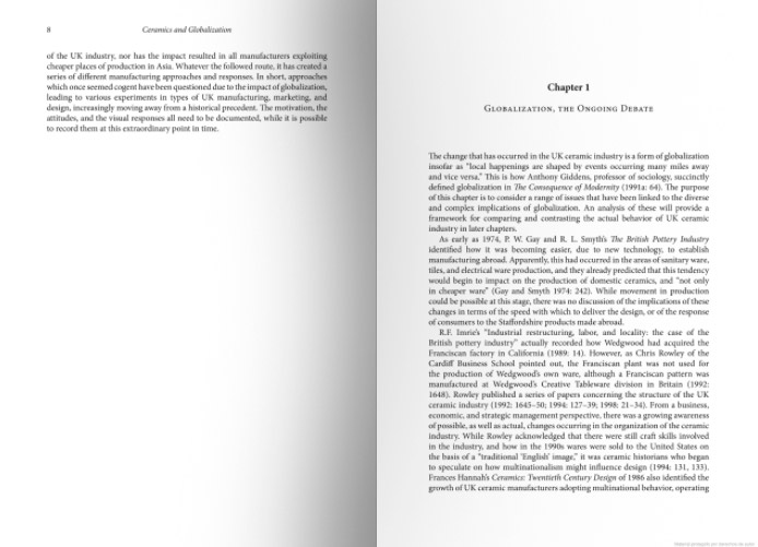 El autor nos ofrece un completo recorrido por la forma en que las manufacturas y talleres de Staffordshire hicieron frente a la globalización, desde los años 90 hasta 2010