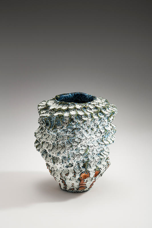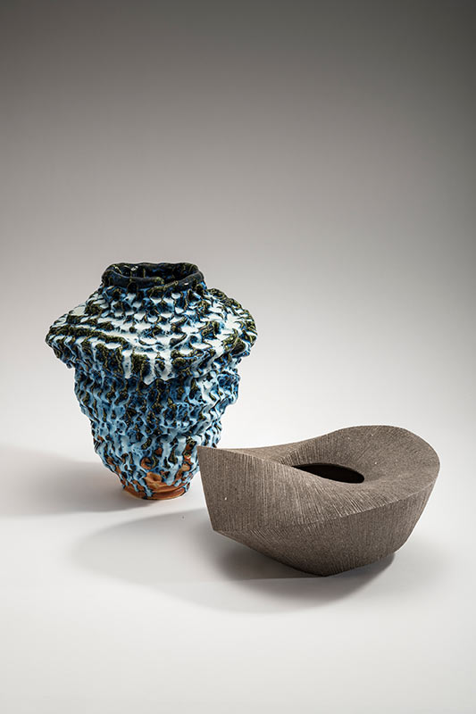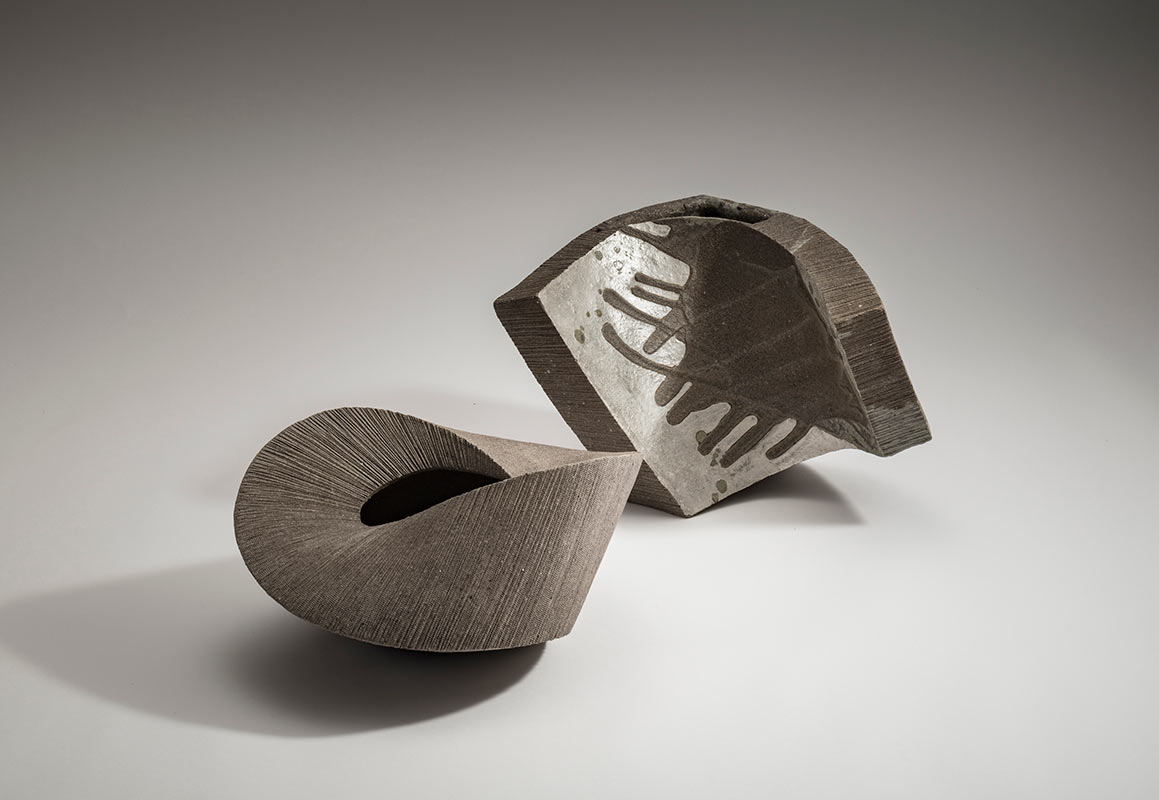 Joan B Mirviss LTD presentará “Double Spiral: The Sculptural Art de Hoshino Kayoko y Satoru”, dedicada exclusivamente al nuevo trabajo de esta célebre pareja de ceramistas , y que incluirá más de treinta obras creadas específicamente para esta muestra. El título, Double Spiral, hace referencia no solo a sus dos carreras, sino también al entrelazamiento de los mundos espiritual y físico y al equilibrio entre los opuestos, tal como lo representa el símbolo yin-yang (taikyokuzu). Mientras la escultura cerámica de Hoshino Satoru se forma literalmente en espiral ascendente, el trabajo de Kayoko mantiene una apariencia más austera, girando y girando a medida que lo hacen sus superficies facetadas. Ambos han declarado en repetidas ocasiones que es la naturaleza de la arcilla y la interacción con la expresión humana lo que les lleva a su confrontación simbiótica sin guiones.