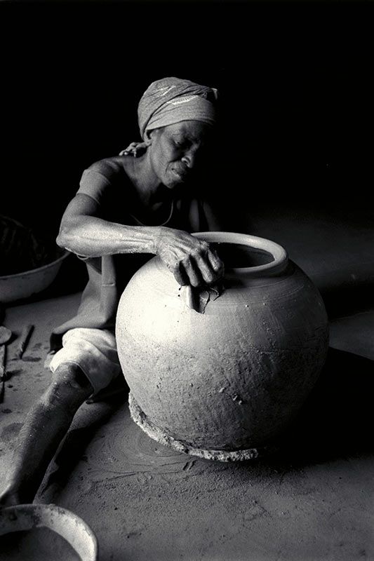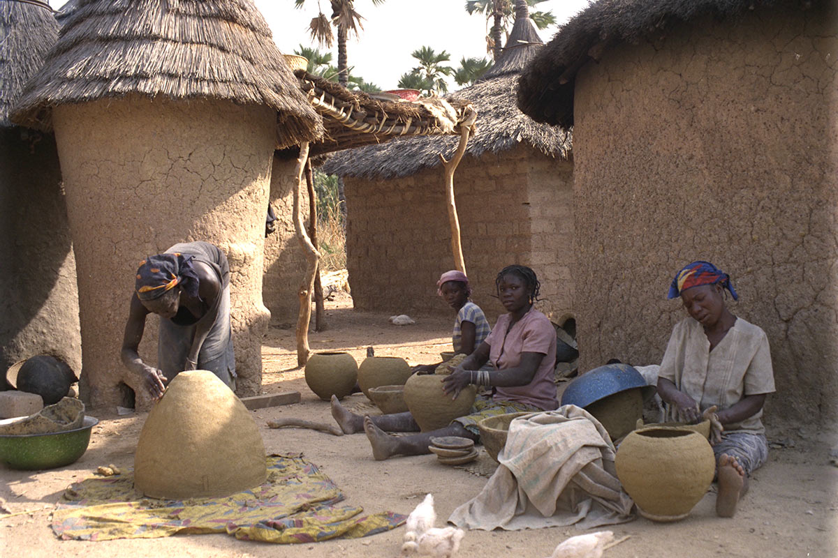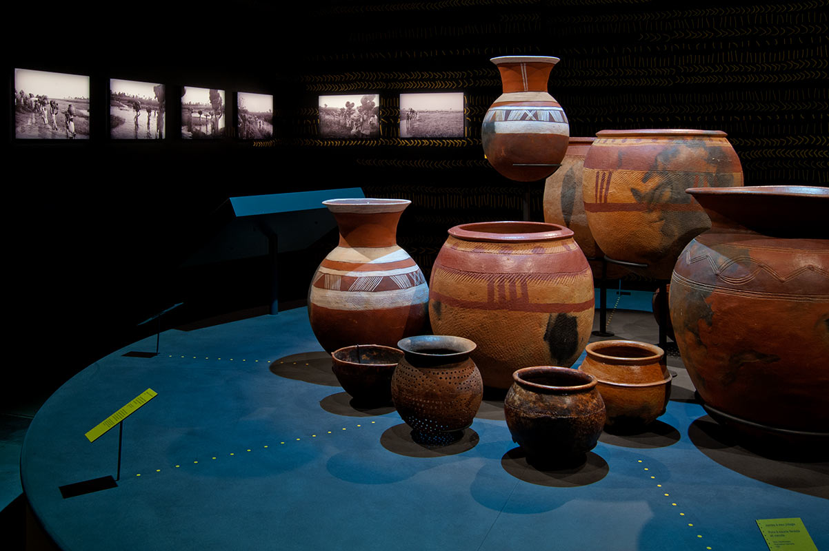 Entre 1991 y 1995, once ceramistas europeos, unidos por iniciativa del artista francés Camille Virot, se trasladaron a varios lugares de África Occidental, como Malí, Burkina Faso, Níger, Camerún y Nigeria. Durante su estancia aprendieron las formas de trabajo de las mujeres alfareras, y trabajaron junto a ellas. A su vielta trajeron alrededor de un centenar de ejemplos de cerámica para uso diario, seleccionados por sus cualidades estéticas, cuyo principal objetivo fue sacar a la luz un savoir-faire contemporáneo en la realización, decoración y cocción de objetos cotidianos. Varias horas de películas, entrevistas, notas, dibujos del natural, herramientas y un gran número de fotografías describen en detalle esta aventura compartida y los principales pasos en la fabricación de las piezas, desde la extracción de la arcilla hasta la cocción. Más allá de su producción, esta muestra revela una identidad social transmitida de generación en generación, marcadores de la realidad cotidiana para estas mujeres, cuyas creaciones son una parte esencial de la vida doméstica.
