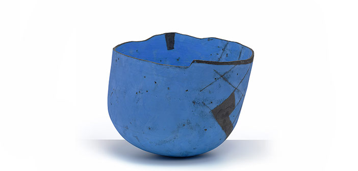 “Massive blue bowl”, 1991. Baja temperatura, encobes coloreados y esmaltes. Diámetro, 53,5 cm. (Imagen cortesía de Erskine, Hall & Coe. Foto: Stuart Burford.)