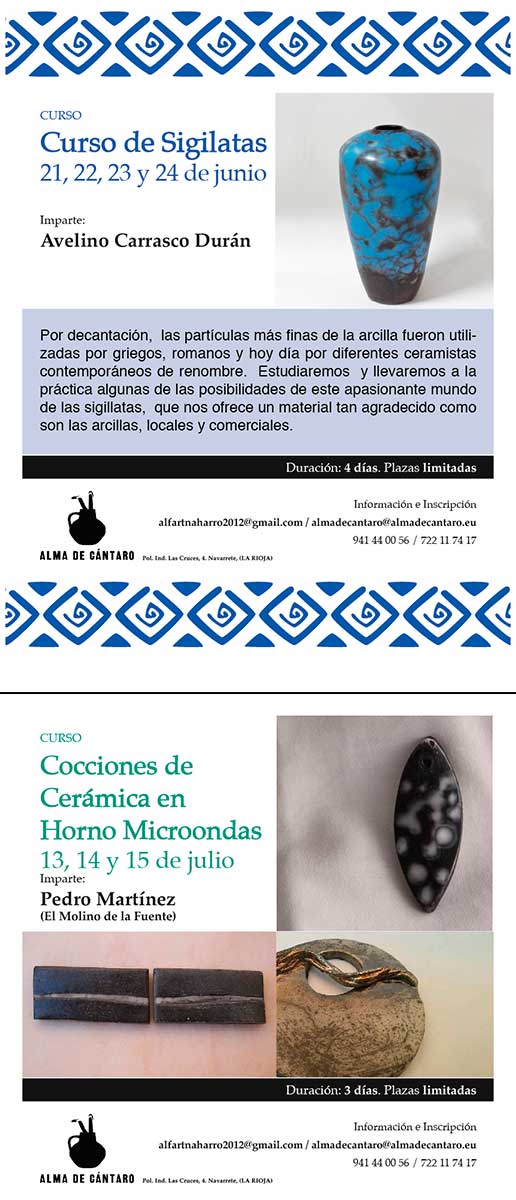En junio y julio se celebrarán en Navarrete, La Rioja, dos cursos de cerámica dedicados a las terras sigillatas, con Avelino Carrasco, y a la cocción de cerámica en horno microondas, con Pedro Martínez