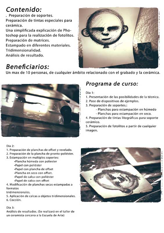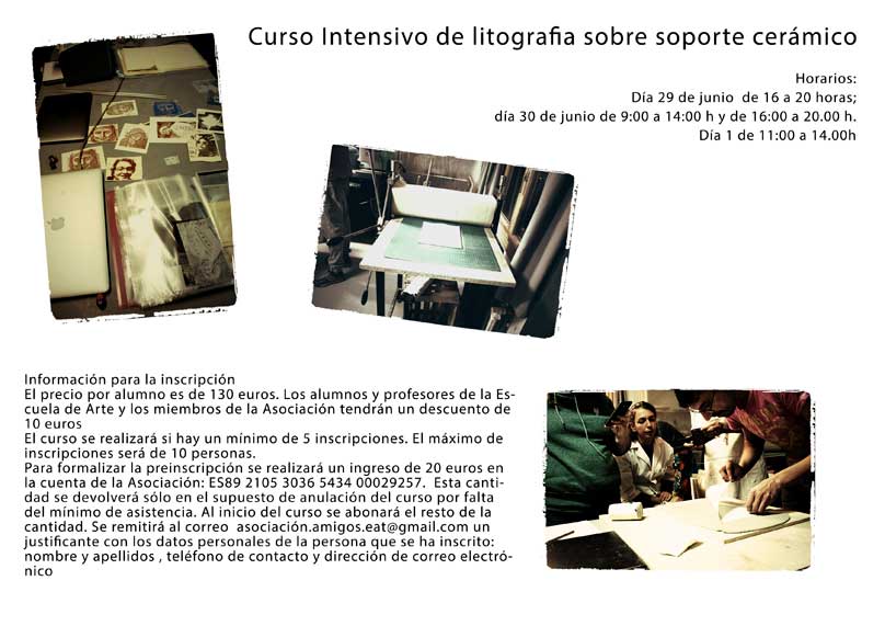 La Asociación de Amigos de la Escuela de Arte de Toledo organiza en esta escuela, del 29 de junio al 1 de julio, este curso impartido por Filu y Simone Muis