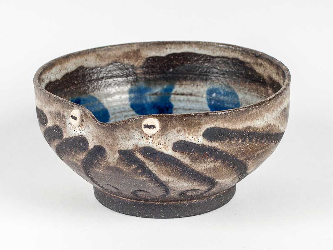 Aunque es de Nara (interior de Japón) la base formal de sus piezas está en Mie, en la costa oriental del Japón, en el Océano Pacífico y en el Mediterráneo, en el Grao de Valencia: el pulpo, el lenguado, el rodaballo, el gallo…, son las «criaturas» de sus platos y cuencos, nada estricto, libre, divertido.